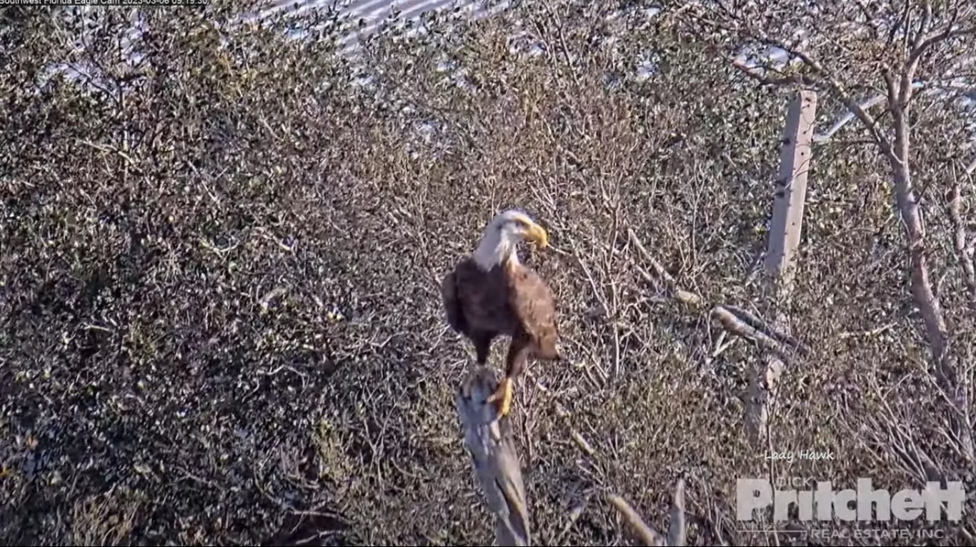 SWFL Eagles – New Intruder Visits video 3/6/23 March 6, 2023 HNF A different Bald Eagle visited the nest tree this morning. SWFL Eagle Cams