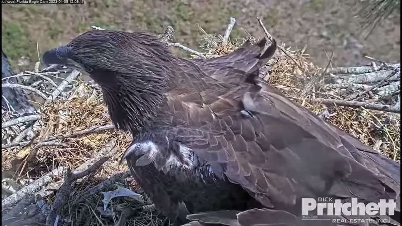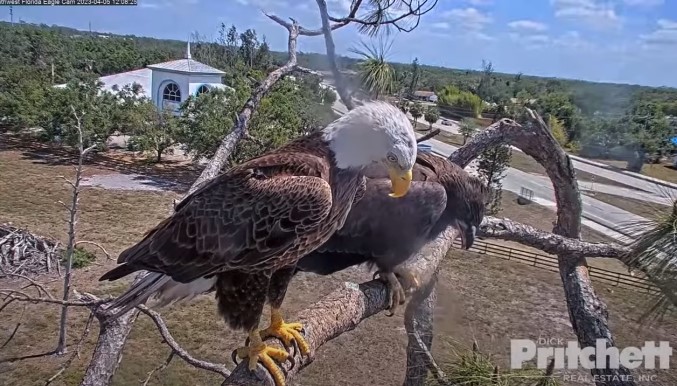 After almost 5 days of being out of camera view, E21 made it’s way back to the nest tree landing in the attic next to M15(Dad). Touchdown happens at timestamp 2:06 in the video.