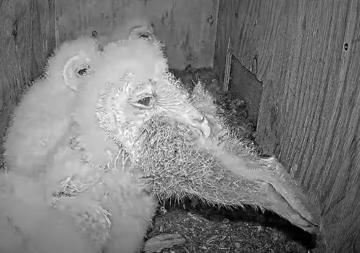This Barn Owlet took on an entire rabbit and swallowed the whole thing. It took several minutes to get the whole thing down, but down it went!