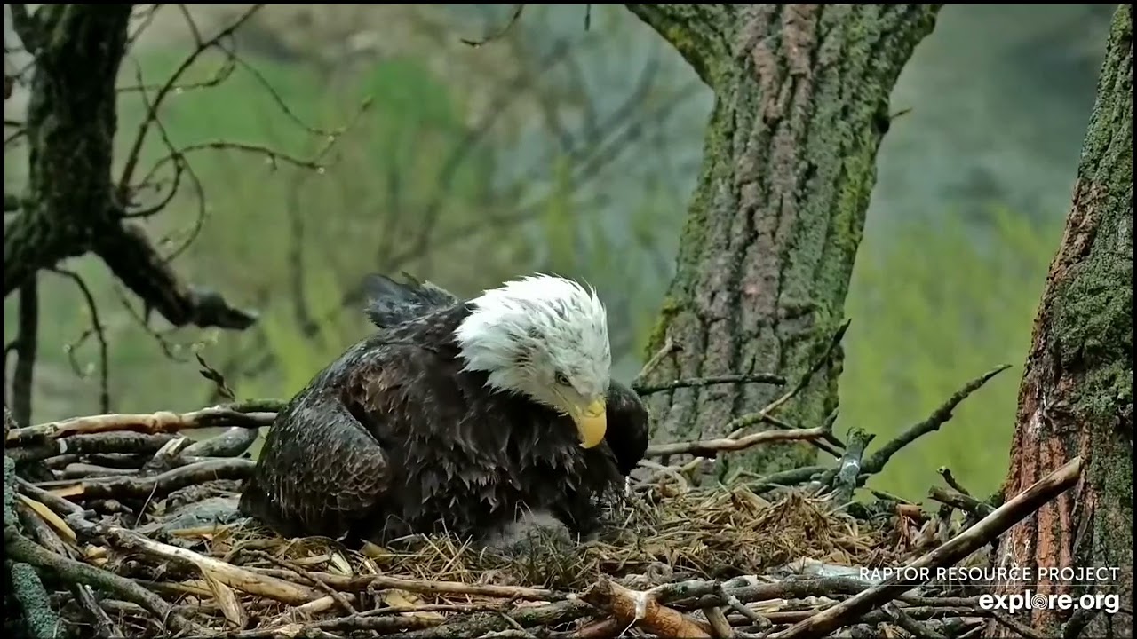 HD was sitting on the nest protecting DH2 from the rain and cold when the little one decided it was time to let one fly. Right in Dads face! Ah the joys of parenthood. Fast forward to the 50 second mark in the video to skip right to it.