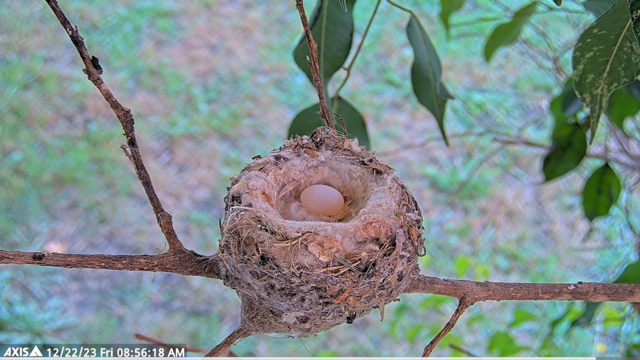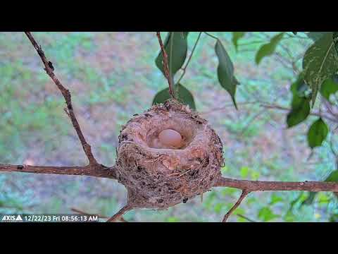 Olive The Hummingbird Lays 1st Egg Video December 23, 2023 HNF 1st egg laid 12/22/23. A 2nd egg will most likely be coming tomorrow. 😎 Hummingbird Nest Cam