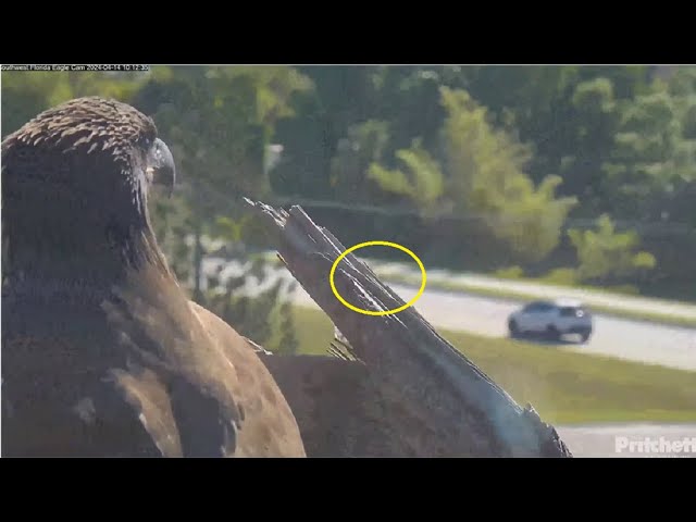 It seems that F23 has a liking to roadkill. This is the 2nd time in the last several days that she was spotted on the road having to avoid vehicles for roadkill. It’s a pretty common practice for any bird or animal that scavenges really, but it does have its risks!