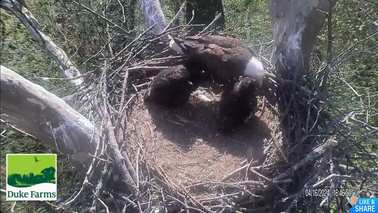 This video shows the parents return after the banding. It took a little while, but they eventually did return and everything is back to normal. The eaglets were so excited! 🤩