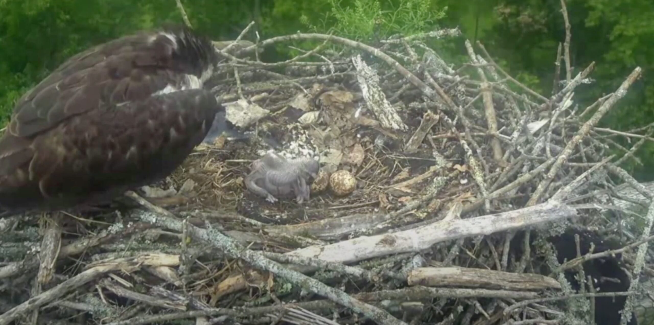 A storm came through yesterday with very high winds and knocked the nest down while the female was in the nest with her young. No word yet if the female or offspring survived. 😢 The camera owner has been notified and is assessing the situation.