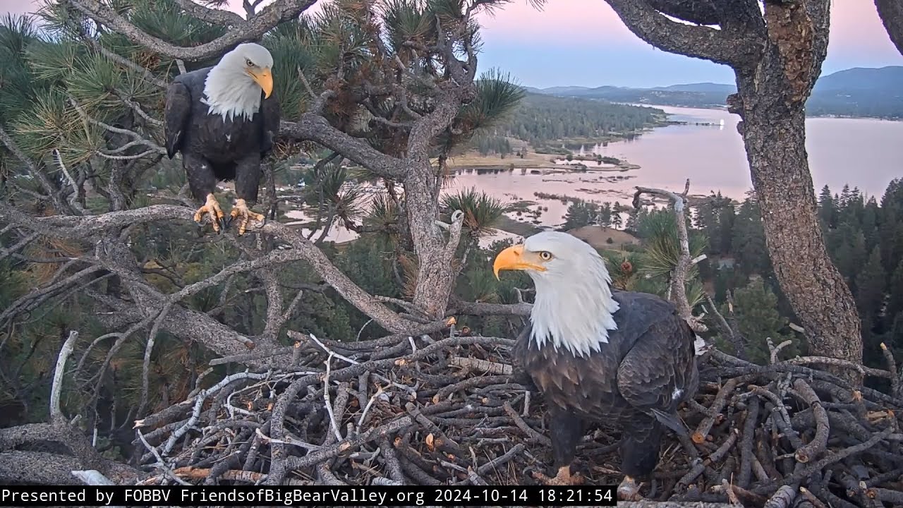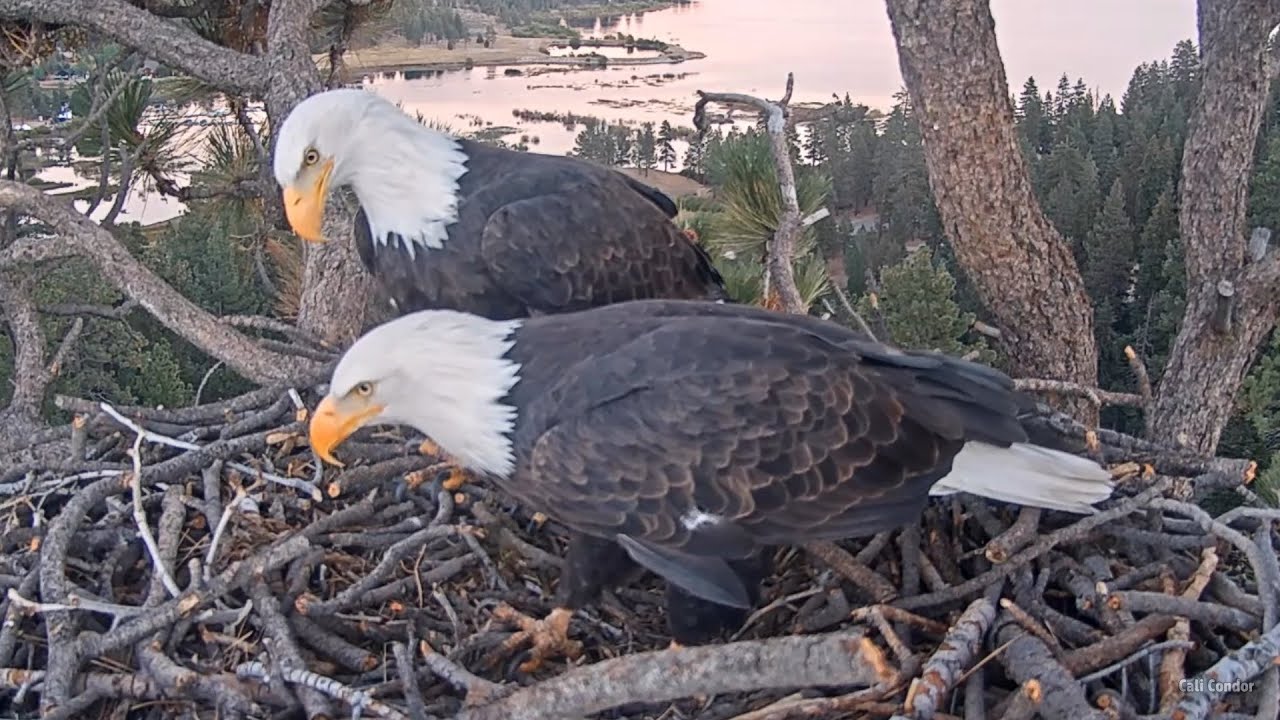 🦅 **Eagle Sightings**: This week started with Jackie and Shadow’s brief nest visit. Jackie brought a stick and made her presence known with a little sneeze. Shadow joined her at sunset, and they moved sticks around, occasionally bumping into each other.