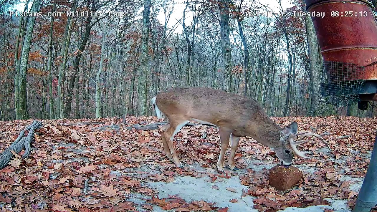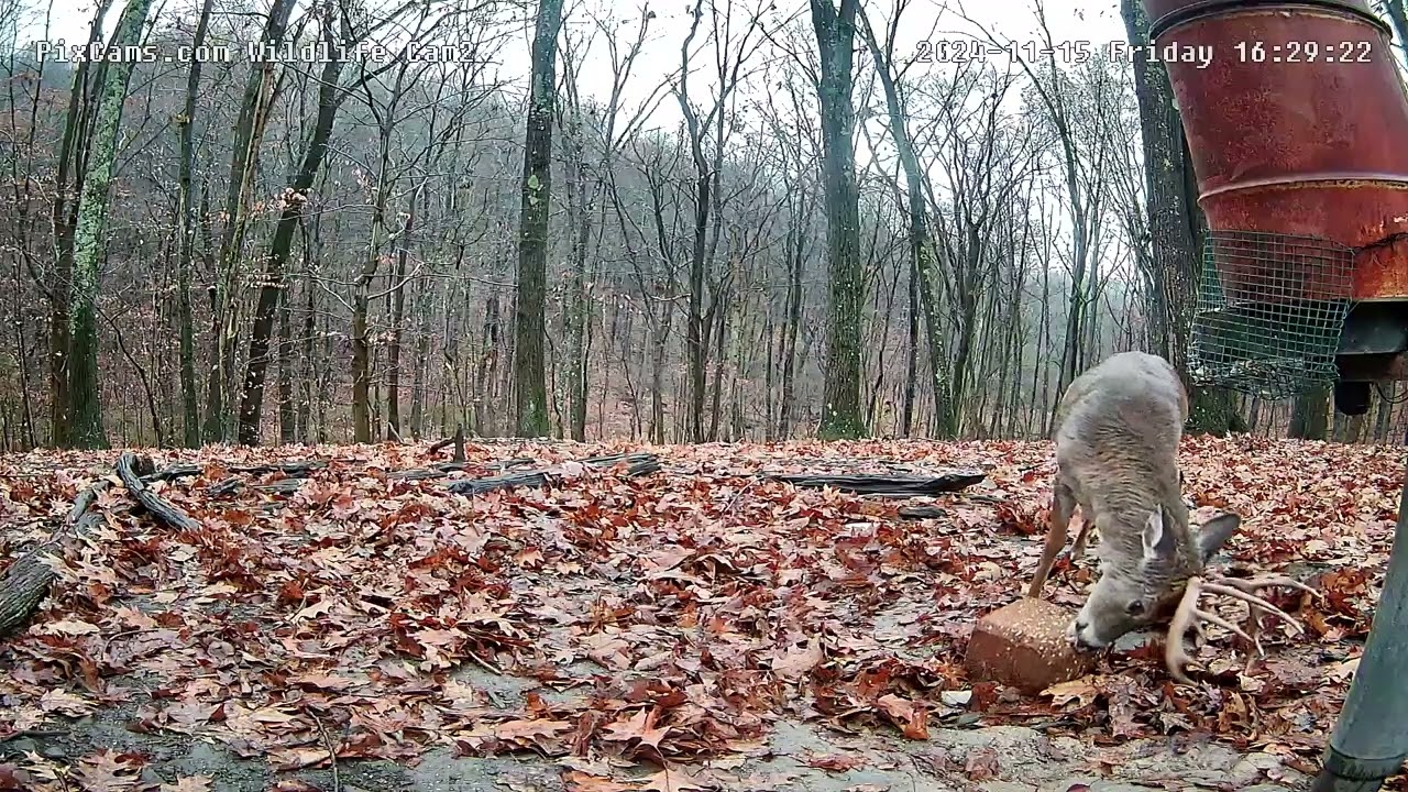 A 12 pointer came in for breakfast this morning. He came in from the right and headed straight to the food block. Towards the end of the video you will see a nice close-up of him.