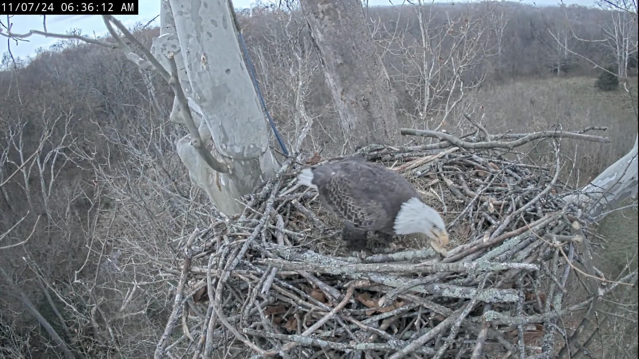 For whatever reason this eagle pair decided to pack up and move after nesting season was over this last spring(2024). They didn’t move very far though. Only about 20ft away from their old nest and in the same tree to boot. Yes, they built another nest about 20ft below the previous one. With that came a new camera fixed in an ideal position at the new nest. We are excited to see what the new nest will bring. Egg laying usually starts in mid to late February here.