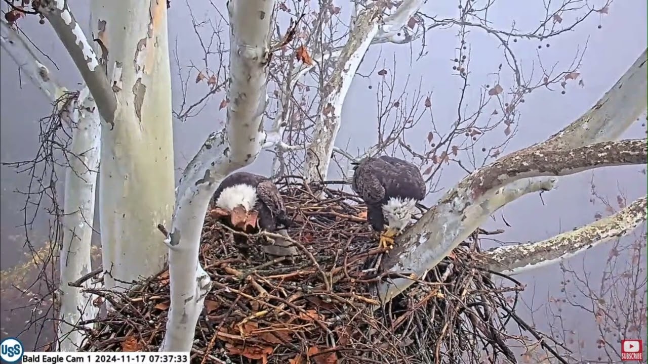 Yesterday morning was a busy one for Irv & Claire. Sticks were brought in from different directions and both eagles were moving things around in the nest. Of course egg laying doesn’t come till sometime in late February to early March, but it sure is nice to see all the activity at the nest!
