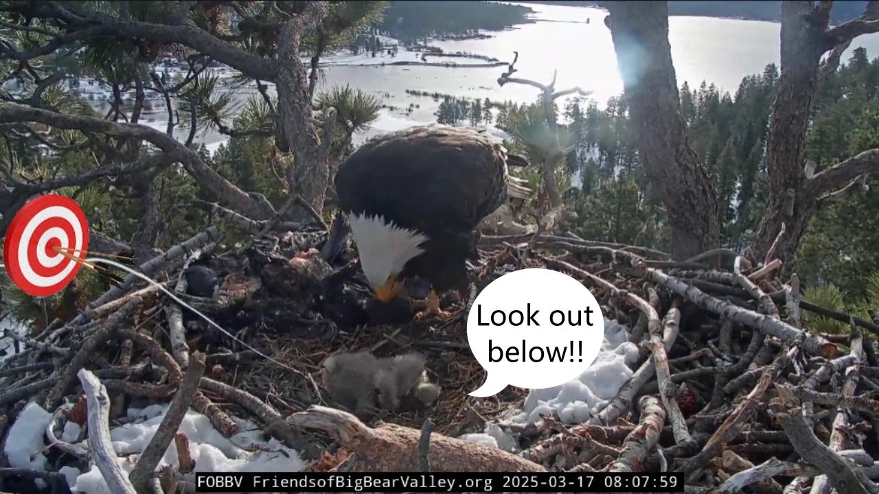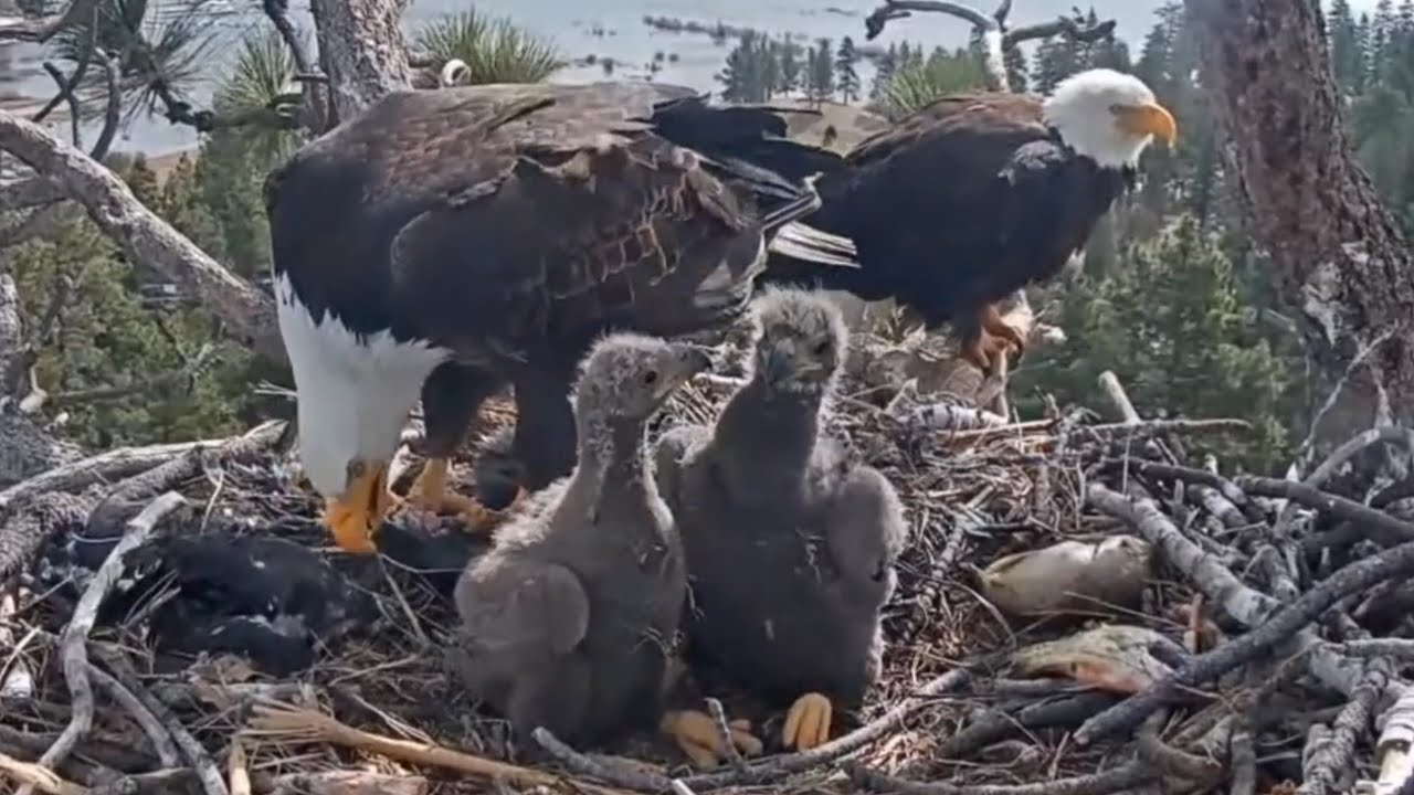 Shadow fed the eaglets breakfast and did a fantastic job. He only had to watch out for one poop shoot in the process. 😝 Both eaglets were left with full bellies. Stay tuned and don’t forget to sign up for our email updates! 🥰