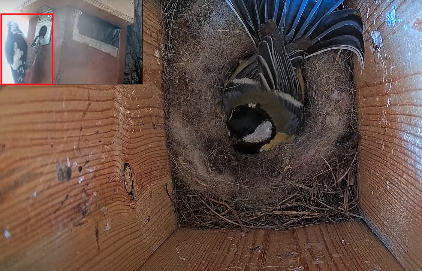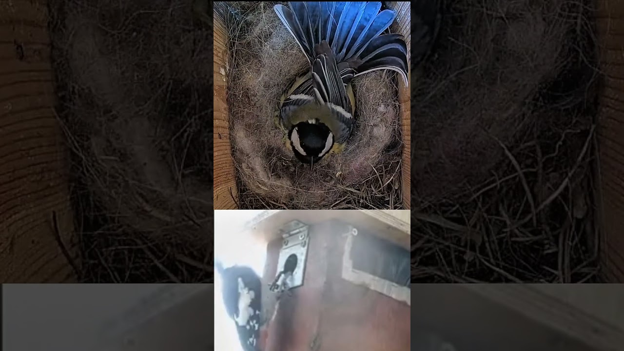 In this video you will see a Great Tit female nesting in her wooden nest box. Not long after a Syrian Woodpecker appears. The woodpecker seemed more curious than anything, but it sure did a good job of ruffling the feathers of the Great Tit! So much in fact that she was left with a feather on her face when it was over. 😂